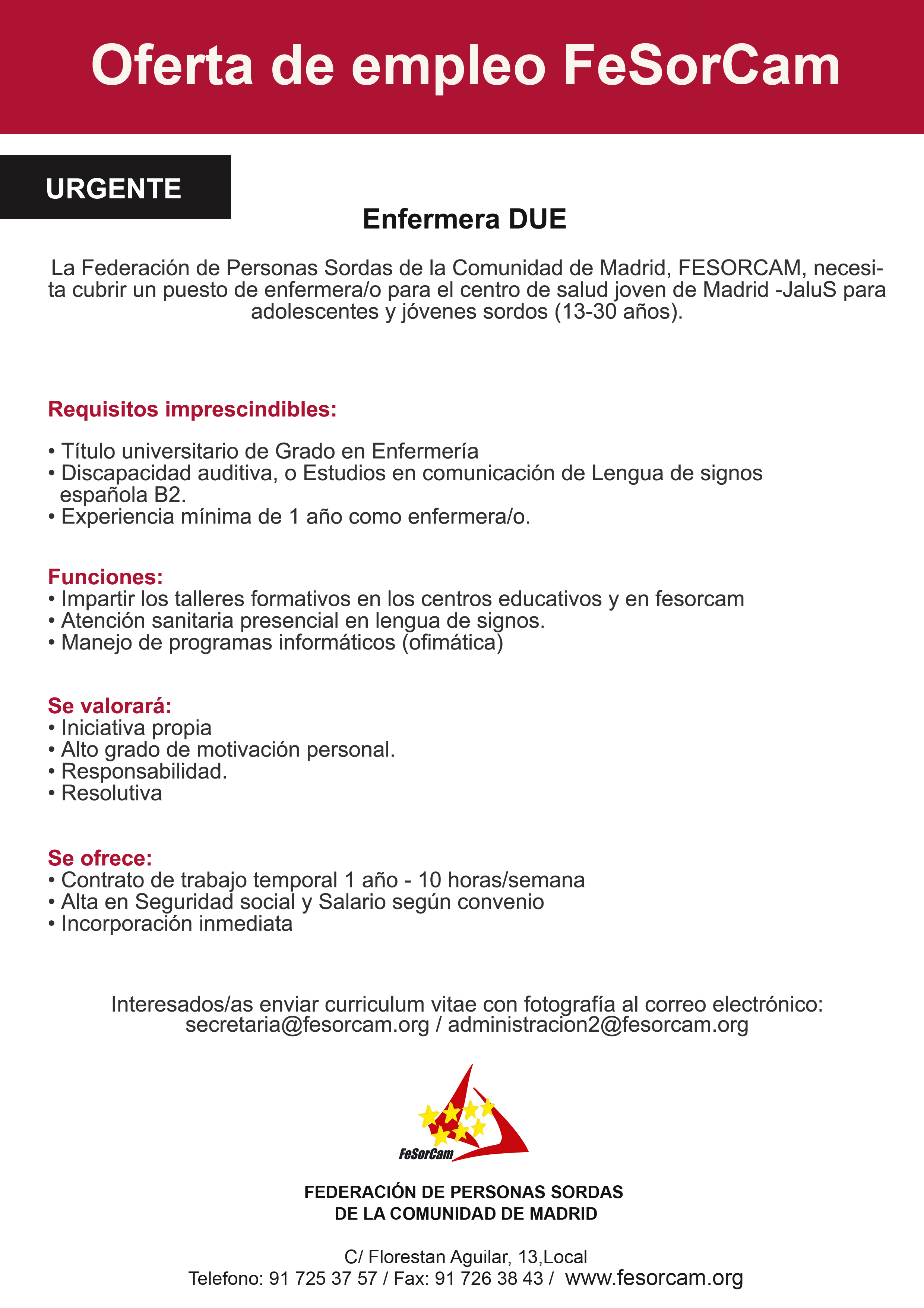 OFERTRA DE EMPLEO FESORCAM - Enfermera DUE