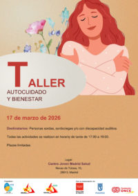 Taller de autocuidado y bienestar Galería Taller de autocuidado y bienestar Taller de autocuidado y bienestarJalus - Salud para juventud sorda (Madrid Salud) | 3 marzo, 2026webmaster2026-03-03T11:20:29+01:0003 marzo 2026|