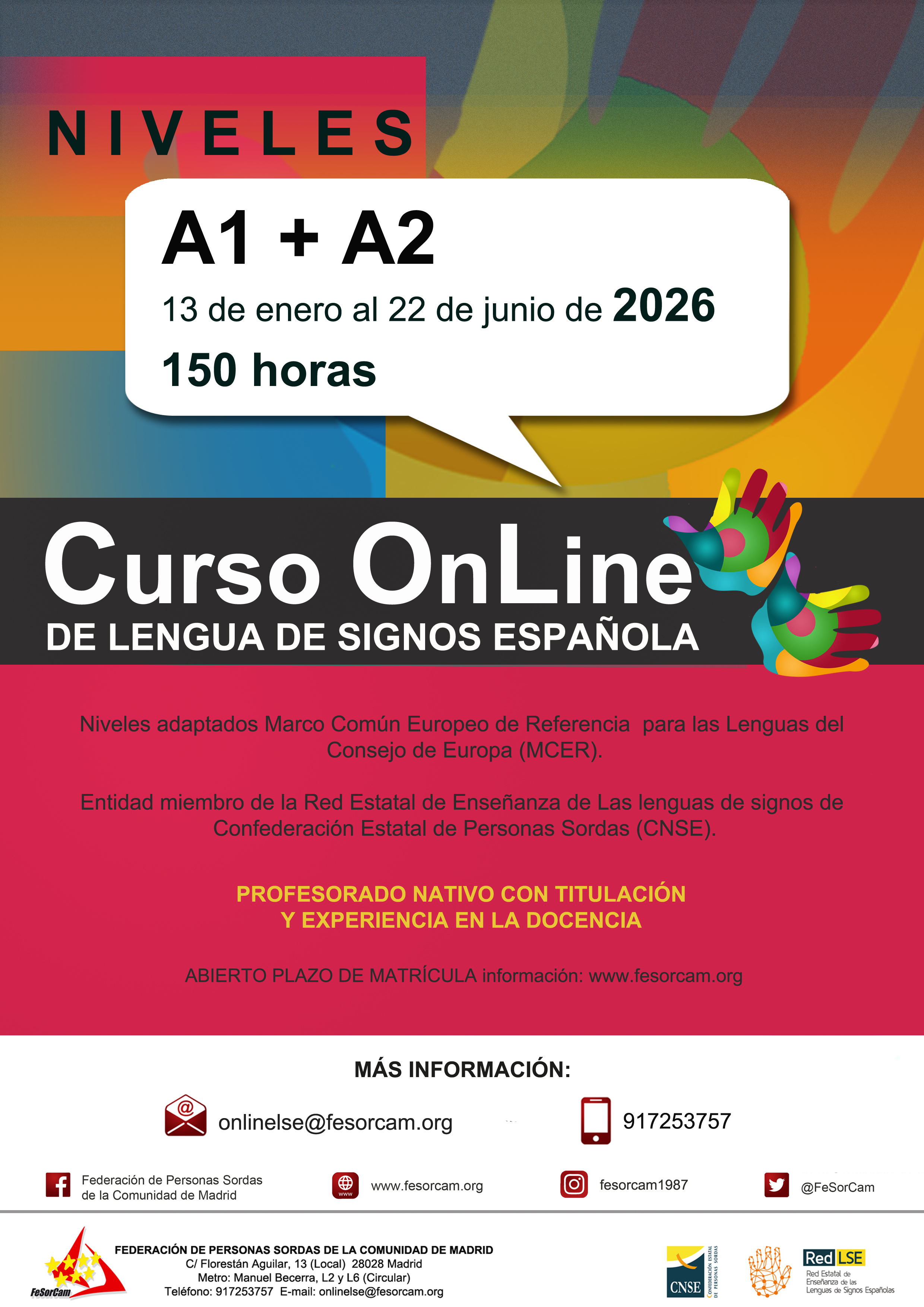 Exclusivamente para las personas que se inscriban en el curso online de LSE nivel A2, para completar el proceso de matriculación deberán presentar certificado de competencia lingüística de nivel A1 homologado por la CNSE.