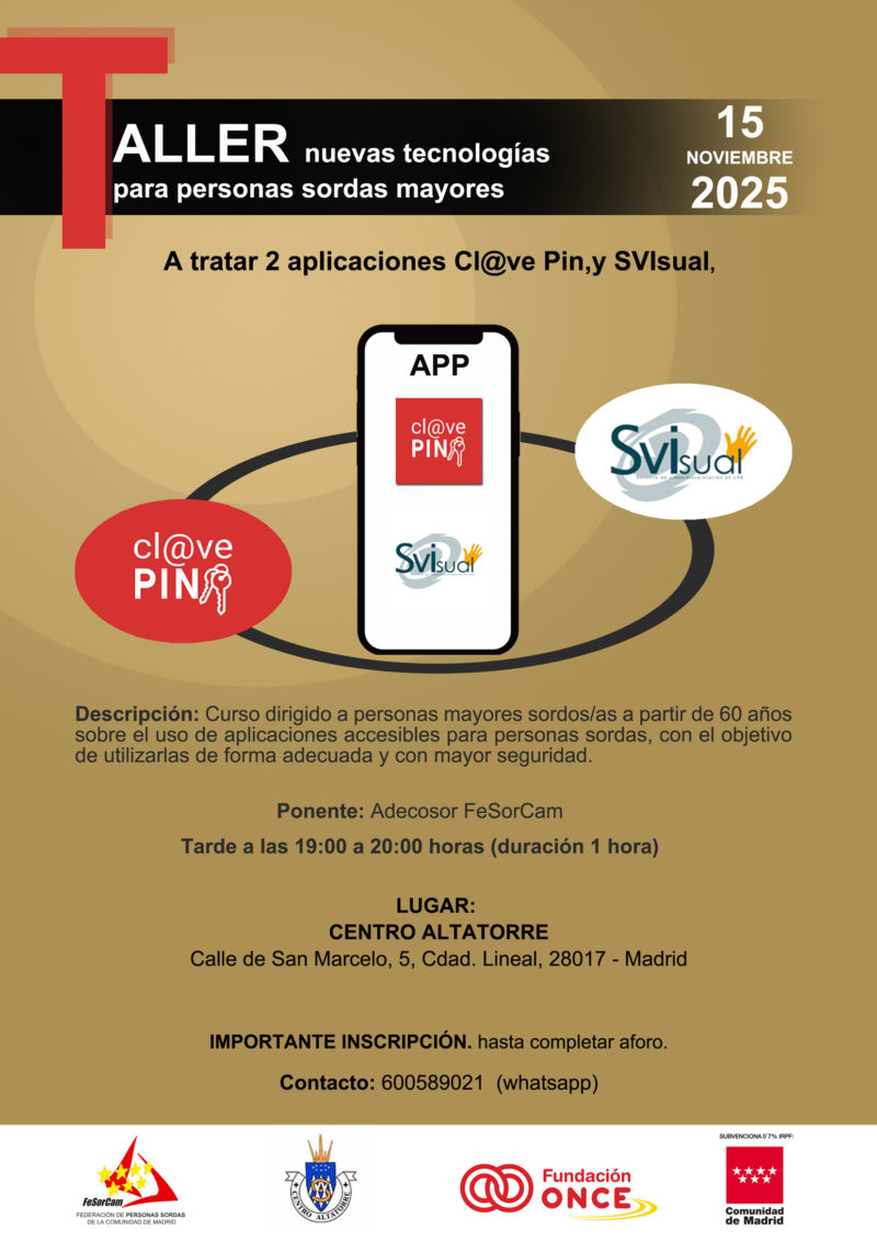 Taller nuevas tecnologías para mayores sordos aplicación móvil webmaster2025-11-11T10:38:05+01:0011 noviembre 2025| Ver imagen más grande Más ImpresiónEmpieza en 4 Días, 6 Horas15 noviembre, 2025 19:00 - 20:00 ¡Comparte esta historia, elige tu plataforma! FacebookTwitterLinkedInWhatsappEmail