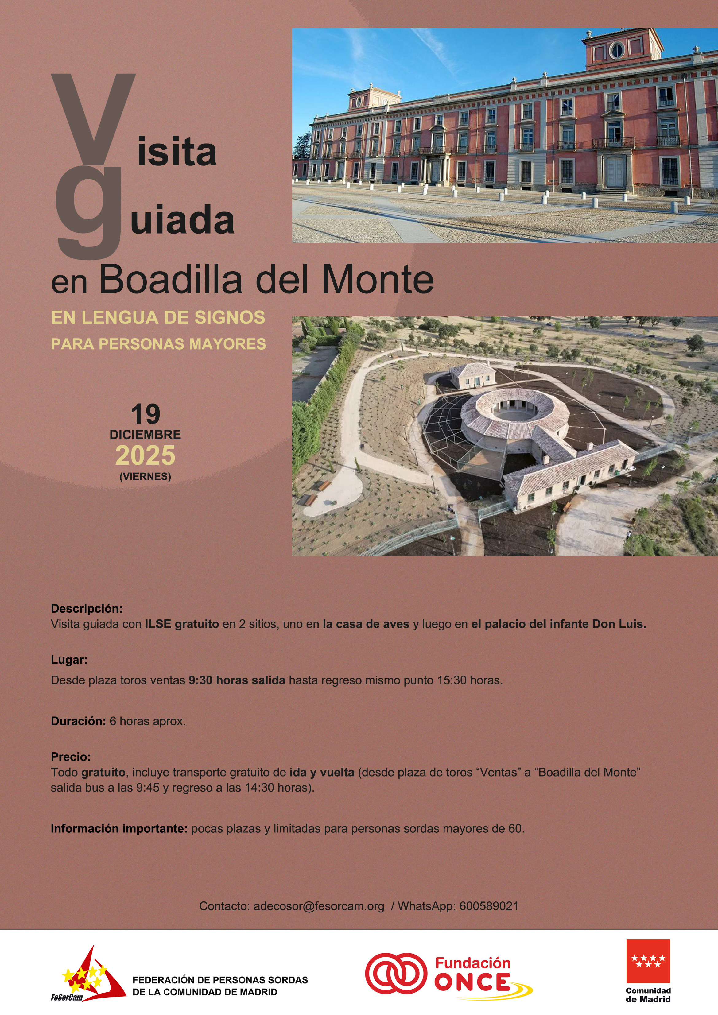 Visita guiada en Boadilla del Monte webmaster2025-12-18T13:34:03+01:0018 diciembre 2025| Ver imagen más grande Más ImpresiónEmpieza en 13 Horas, 20 Minutos19 diciembre, 2025 09:30 - 15:30 ¡Comparte esta historia, elige tu plataforma! FacebookTwitterLinkedInWhatsappEmail