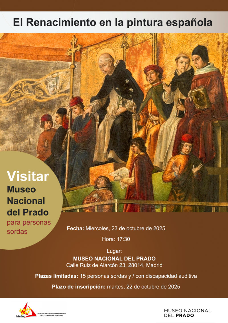 Visita guiada museo de prado “El Renacimiento en la pintura española” para personas sordas webmaster2025-10-20T12:54:52+02:0020 octubre 2025| Ver imagen más grande Más ImpresiónEmpieza en 3 Días, 13 Minutos23 octubre, 2025 17:30 - 19:30 ¡Comparte esta historia, elige tu plataforma! FacebookTwitterLinkedInWhatsappEmail